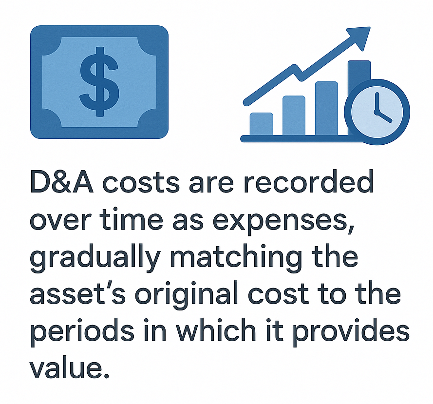 D&A costs are recorded over time as expenses, gradually matching the asset’s original cost to the periods in which it provides value.