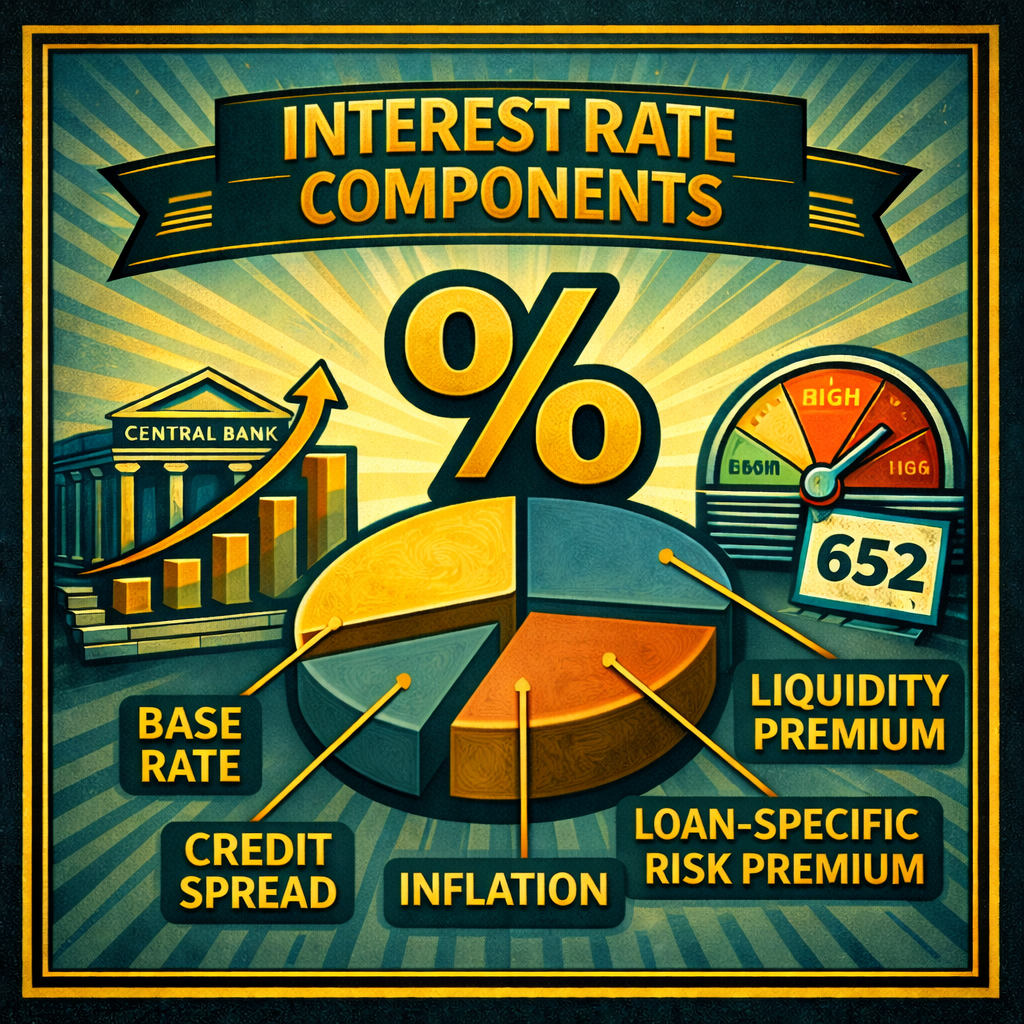 When a business gets a commercial loan, the interest rate isn’t just pulled from a hat — it’s built from multiple layers that reflect market conditions, borrower risk, and deal structure. Understanding how these components work gives you better leverage in negotiations and a clearer picture of what your rate actually means.