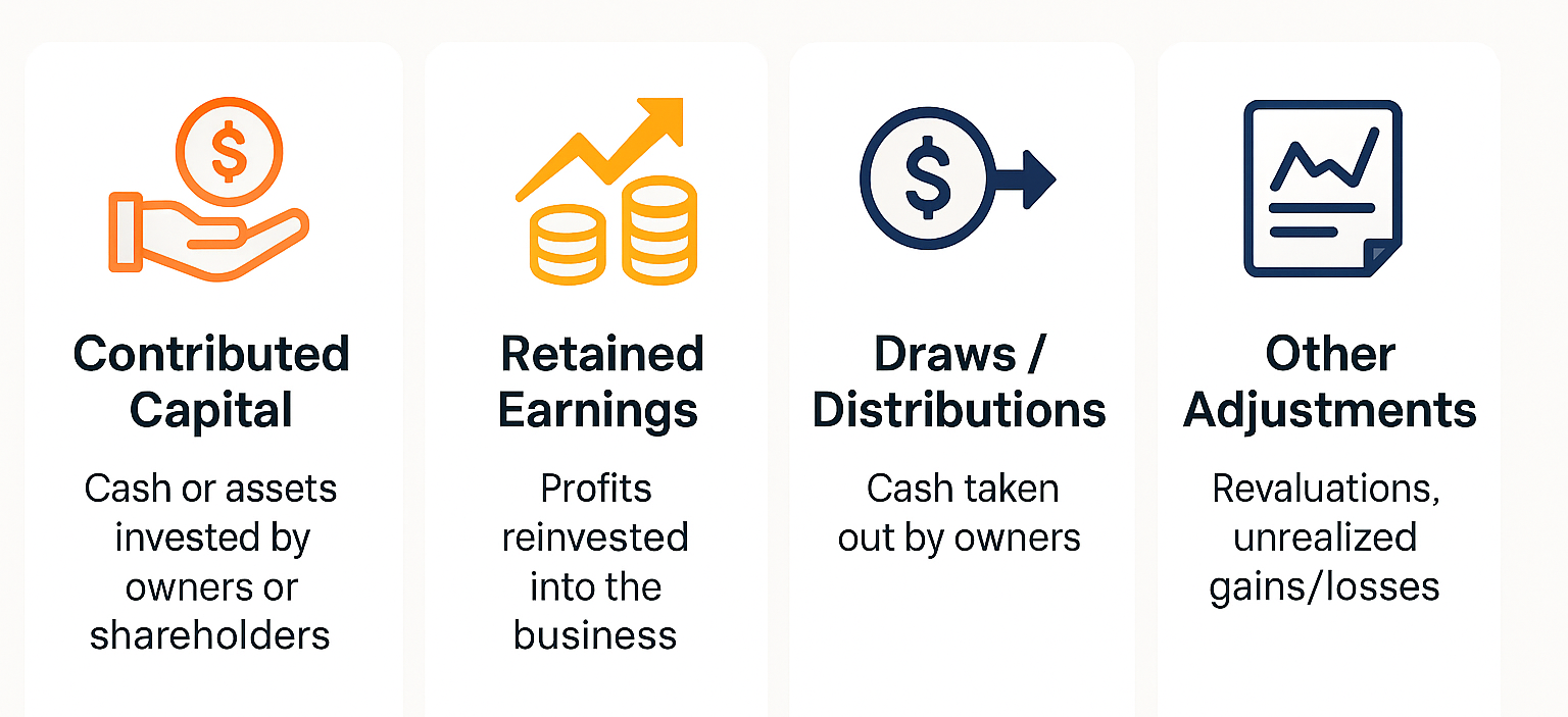 - Not all changes come from profits or contributions. Accounting rules sometimes adjust equity for things like: